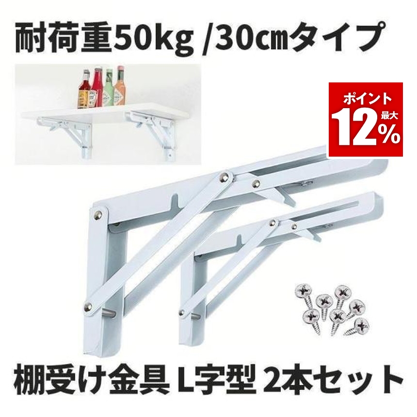棚受け 金具 アイアン ブラケット ウォール シェルフ 折りたたみ ウォールシェルフ おしゃれ 壁 インテリア L字型 30cmタイプ ホワイト 2-ORIKATA-30-WH