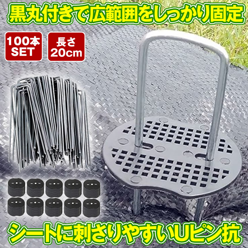 防草シート ピン Uピン杭 黒丸付 固定ピン 除草シート 100本 セット 防そうシート 防そうしーと 固定用 固定 人工芝 おさえピン 押さえピン 20cm 園芸シート