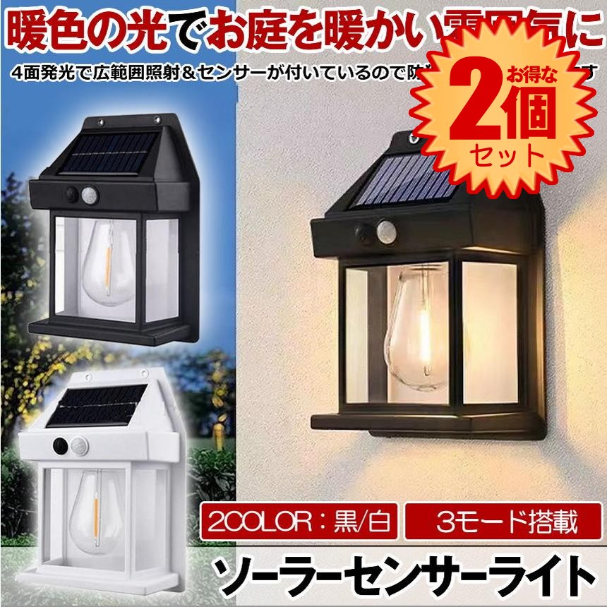 ソーラーライト 屋外 防水 センサーライト ガーデンライト ソーラーセンサーライト 暖色系 電球色 ウォールライト センサー 暖色 防犯 照明