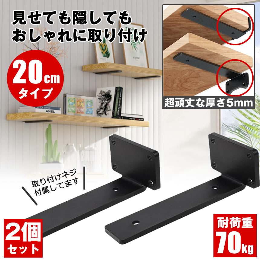 【4本セット】棚受け 棚受け金具 アイアン ブラケット 金具 20cm 2個セット 棚 ラック ウォール シェルフ スタンド ブラック 隠し棚受け アイアンブラケット