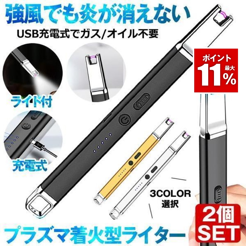 2個セット ライター おしゃれ 電子ライター USB充電式 プラズマ プラズマライター LED ライト 火起こし 火おこし TYPE-C 点火用