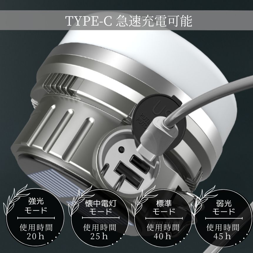 TYPE-C充電/ソーラー充電も出来て