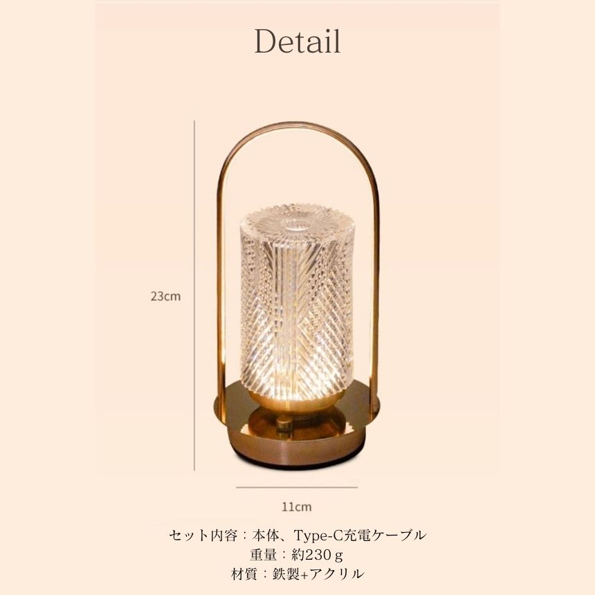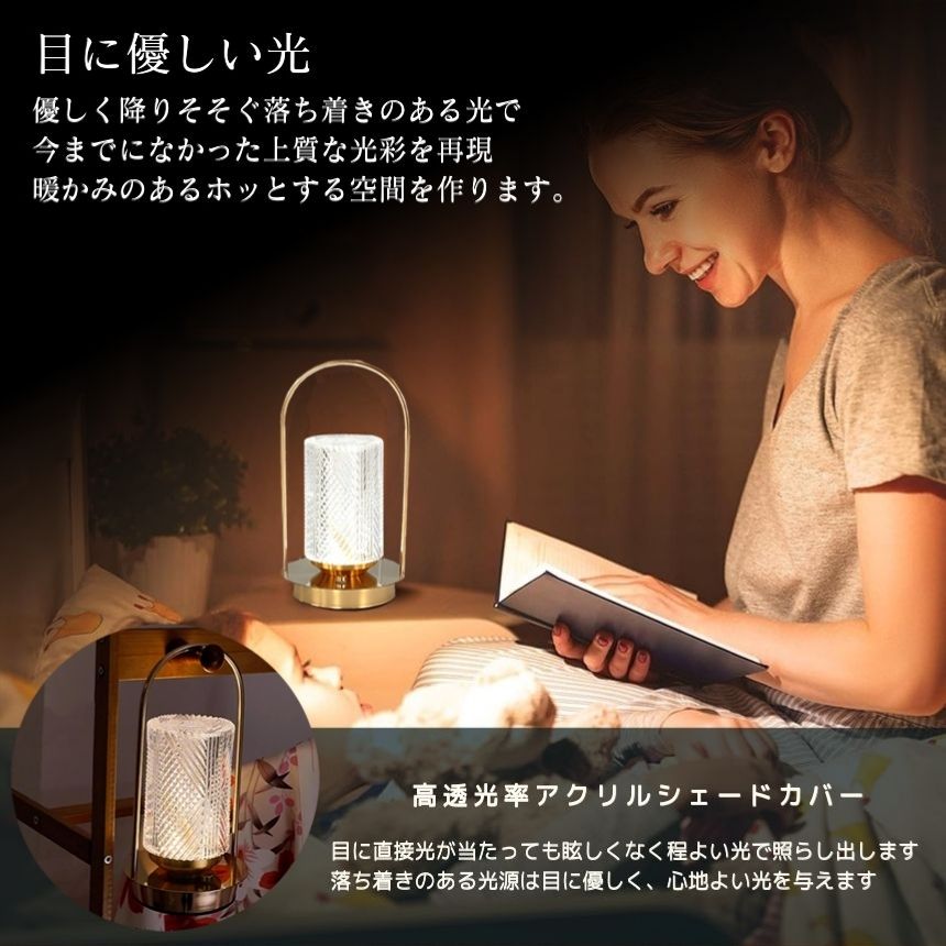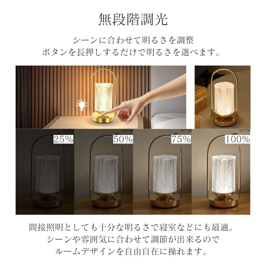 デスクライト コードレス LED テーブルランプ ナイトライト ランプ 充電式 クリスタル ベッドサイドランプ 卓上ライト ルームライト テーブルライト 間接照明