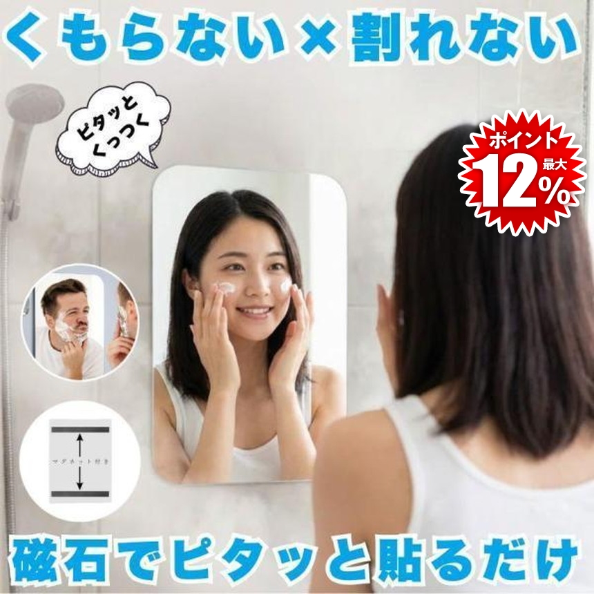 鏡 マグネット お風呂 浴室鏡 バスミラー ミラー 磁石 曇らない くもらない くもり止め 曇り止め 割れない パネルミラー 樹脂ミラー 浴室ミラー 軽量 浴室 風呂