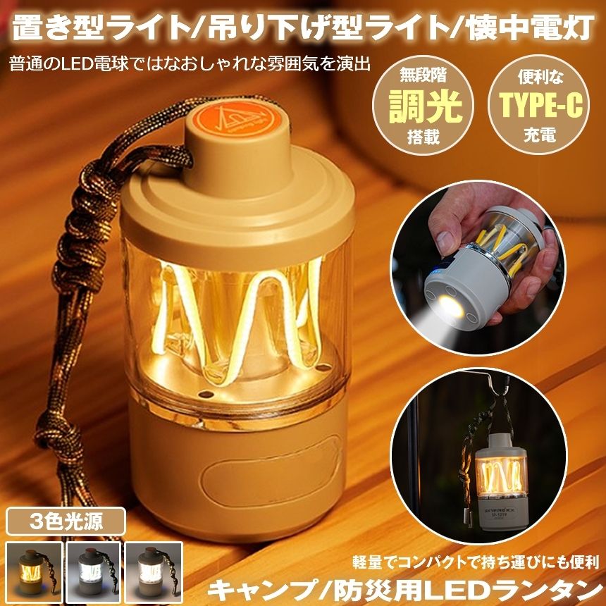 LEDランタン 充電式 TYPE-C キャンプ ライト ランタン 懐中電灯 ミニランタン 小型 電球色 昼白色 明るさ 無段階調光 調色 卓上 吊り下げ キャンプ アウトドア