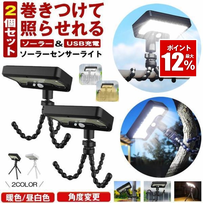 2個セット ソーラーライト センサーライト ガーデンライト USB 充電式 屋外 led 防水 人感 充電式 明るい 防犯 屋外照明 明暗センサー 卓上 アウトドア キャンプ