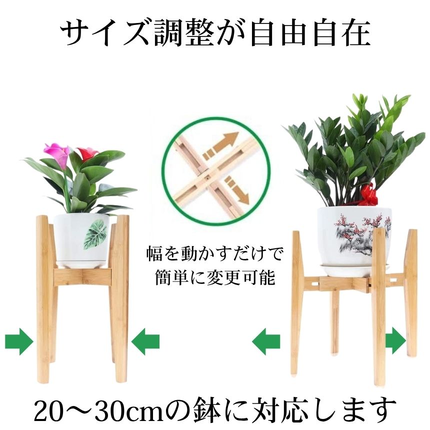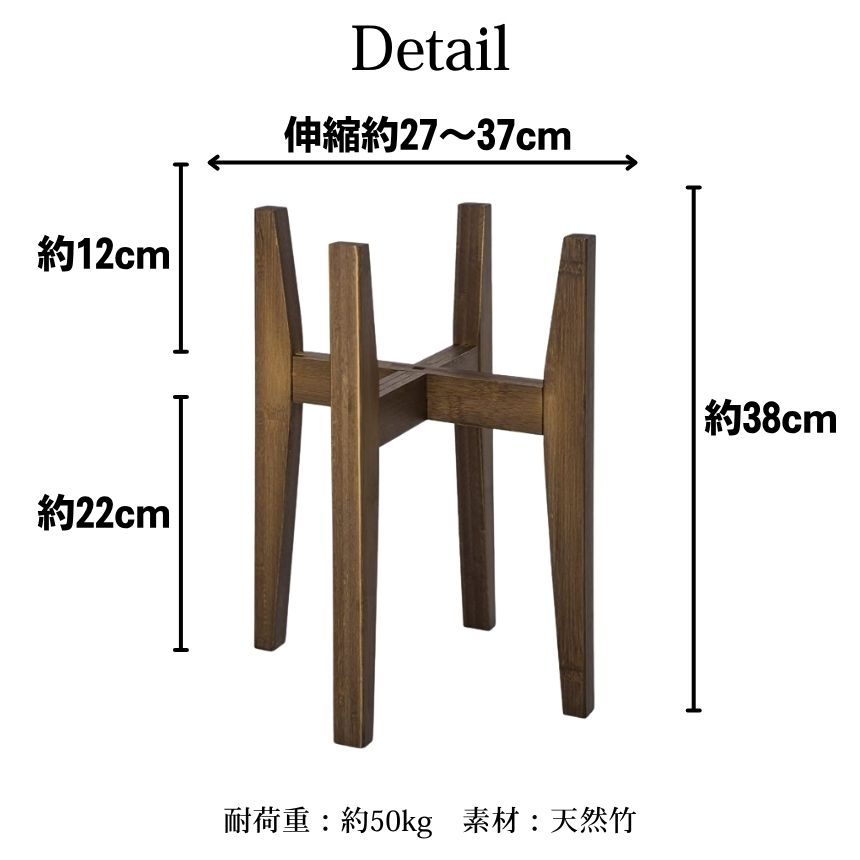 高さ38cm、鉢の直径20?30cmまで対応可能な調整機能つき。5号?10号サイズの植木鉢にフィットする仕様で、植物のある暮らしをもっと自由に、美しく整えてくれます。