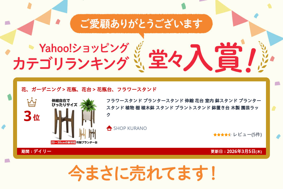 そんな、植物好きな方の“あるある”なお悩みにお応えするのが、こちらの天然竹製フラワースタンド。
