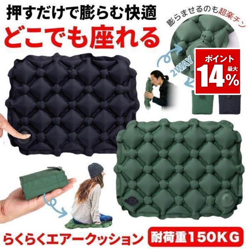レジャーシート 厚手 クッション 大きい ポンプ アウトドア エアークッション コンパクト 座布団 シート 折りたたみ キャンプ 飛行機 折りたたみクッション