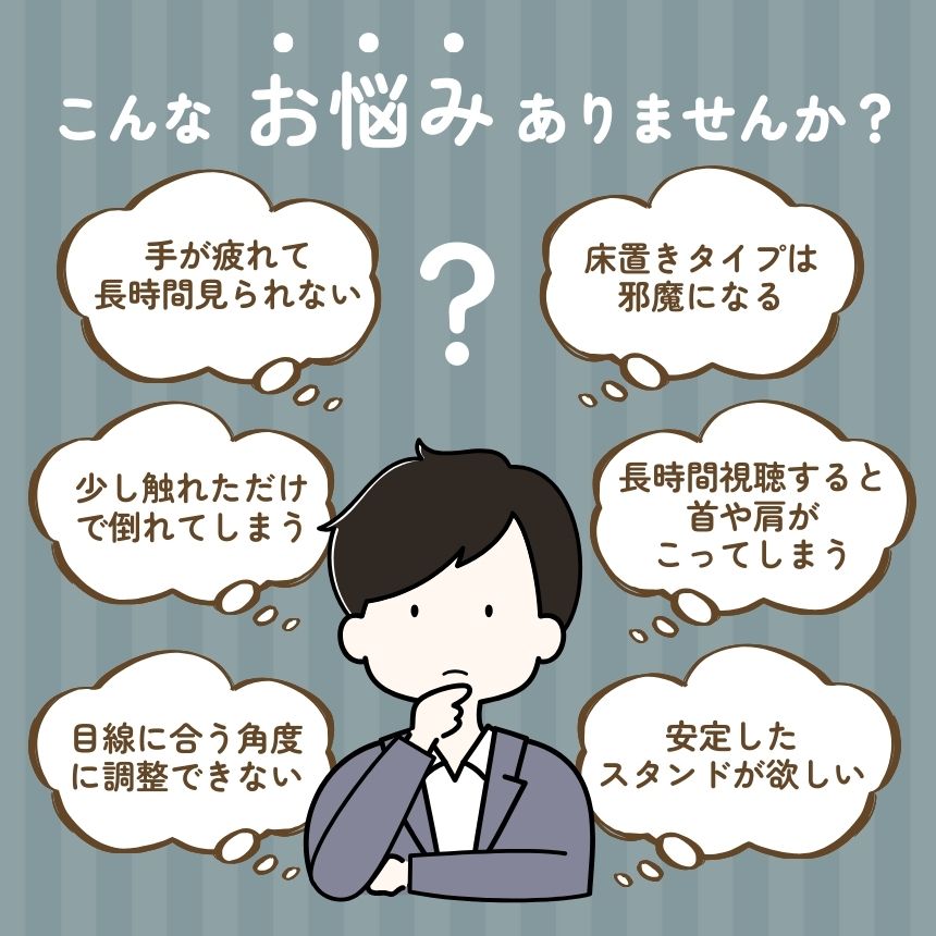 ソファやベッドで固定できるスタンドを探しても、安定せず倒れてしまう…