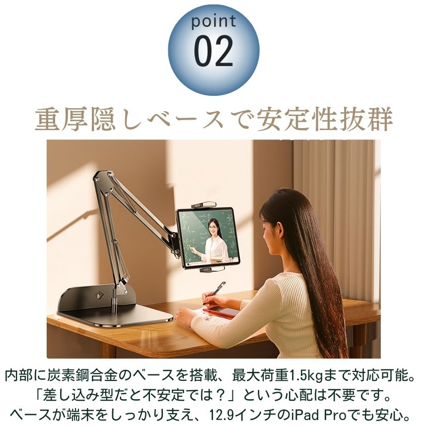 12.9インチの大型タブレットもラクラク支えられる