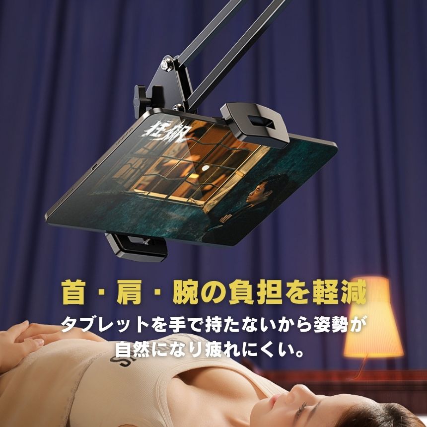 寝ながら快適視聴!圧倒的安定感&自由自在な角度調整で“手放し視聴”を叶える