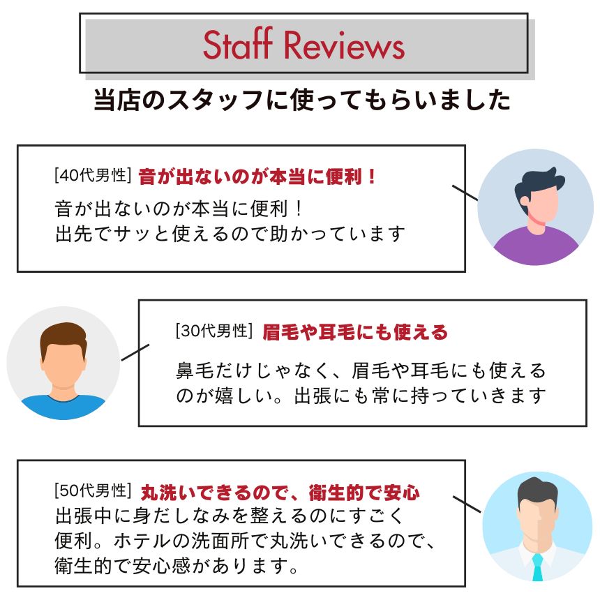 ・鼻毛だけでなく、耳毛・眉毛・あごひげ・産毛・若白髪にも使える