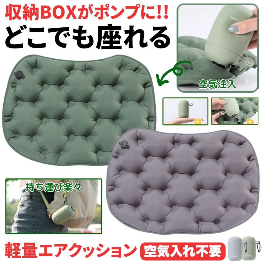従来のエアークッションは「空気を入れるのが大変」「ポンプを別で持ち運ぶのが面倒」といった悩みが多いもの。