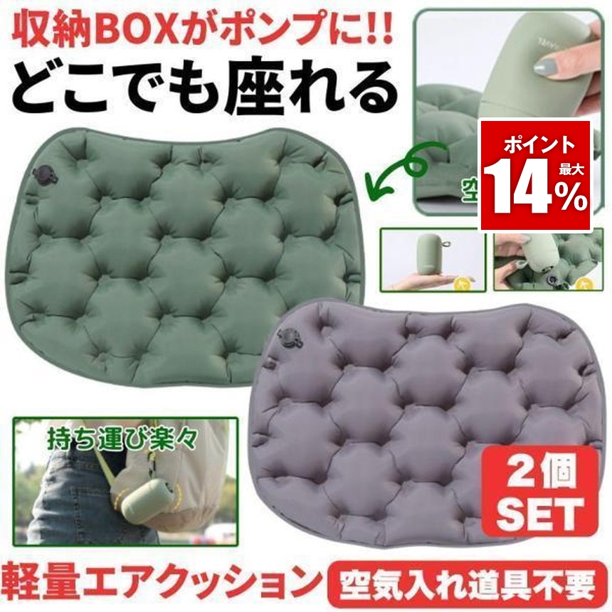 2個セット レジャーシート 厚手 クッション 大きい エアポンプ アウトドア エアークッション エアーポンプ コンパクト 座布団 シート 折りたたみ クッション