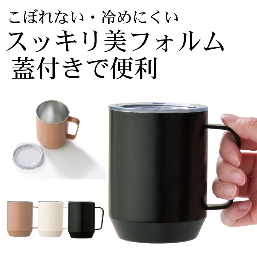 「スッキリシルエットの蓋付きステンレスマグ」です。