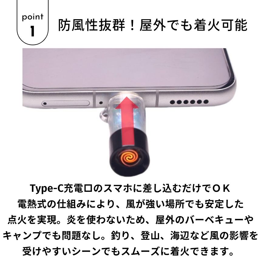 電子ライター usbライター 電子 ライター 電気 Type-C コイル 電気ライター USB 線香 着火マン スマホ 防風 アウトドア タバコ 煙草 着火 焚き火 火おこし