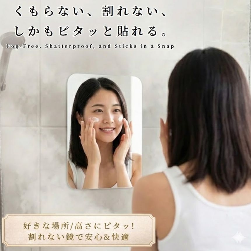 そんな浴室の小さなストレスを解消するのが、割れないマグネットバスミラーです。