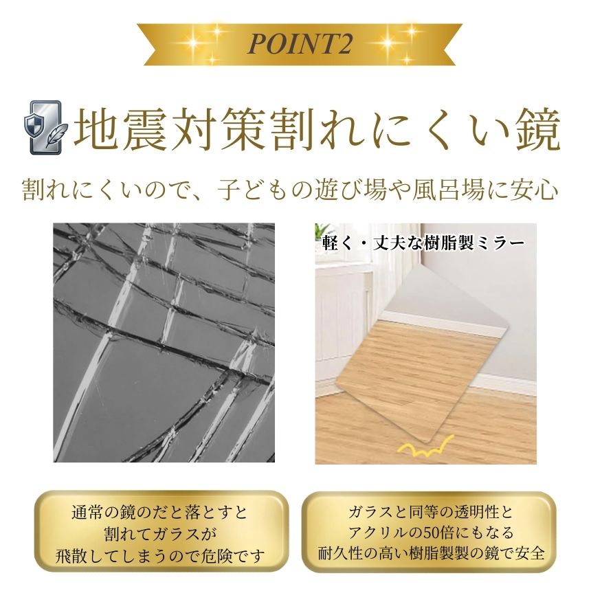 本商品はガラスではなく、軽くて安全な樹脂ミラーを採用。