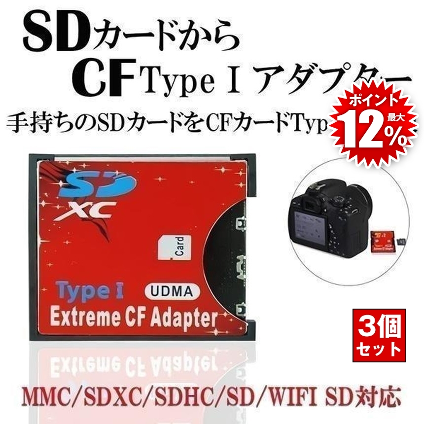 3個セット SDカード CFカード コンパクトフラッシュ メモリ 変換 アダプター SD CFアダプタ アダプタ MMC SDXC SDHC WIFI カード SDCF