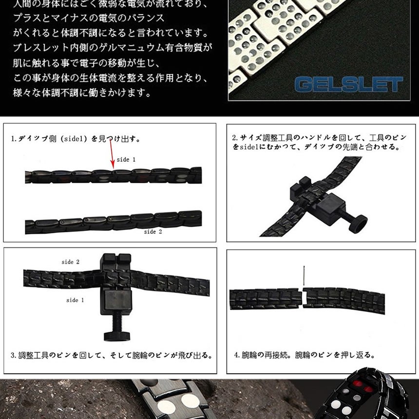 磁気ブレスレット ブレスレット ゲルマニウム マグネット スポーツ メンズ 静電気除去 ステンレス 静電気 抑制 マイナスイオン おしゃれ ベルト調整 工具付き