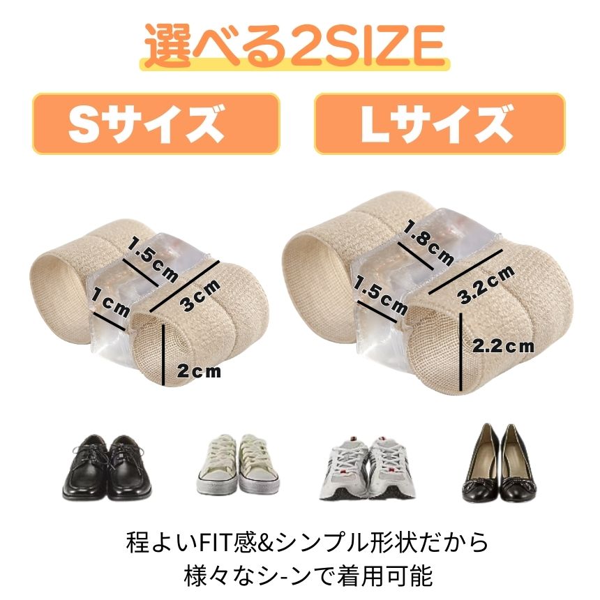 左右兼用で使えるため、片足・両足どちらにも対応。サイズはS・Lの2種類から選べ、足の大きさに合わせやすくなっています。