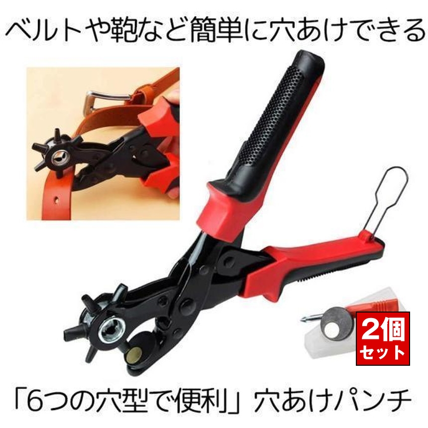 2個セット 穴あけパンチ ベルト 丸穴 6サイズ 穴開け 回転式 ベルトポンチ 6段階式ダイヤル・2〜4.5mm レザー パンチ 革 皮革 穴あけ ポンチ
