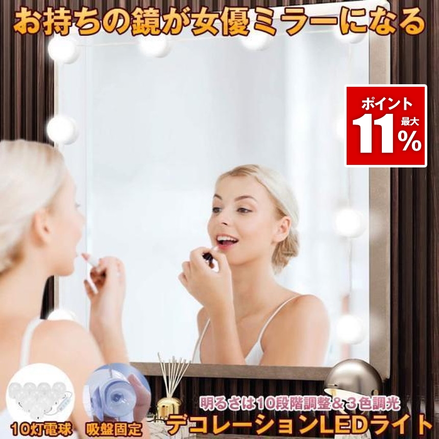 女優ライト LEDミラーライト メイクアップライト ハリウッドミラーライト ハリウッドライト 化粧鏡 メイク ドレッサーライト 三色調光 明るさ10段階調整