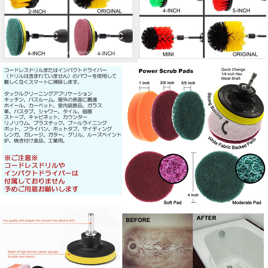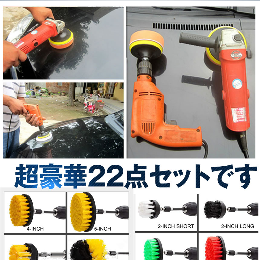 ドリルブラシ スクラブパッド 22点セット パワー スクラバー 掃除 洗車 磨き ドライバー アタッチメント カーペット クリーニング ポリッシャー バフ タイヤ