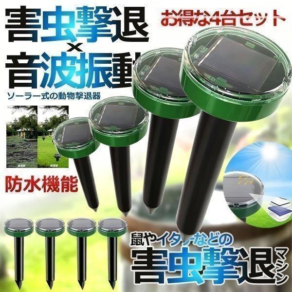 モグラ退治 4本 モグラ撃退器 駆除 超音波 動物撃退器 モグラ 駆除 ソーラー 充電式 音波振動 屋外 害獣撃退 蛇 鳥 野良猫 退治 対策 猫 セット