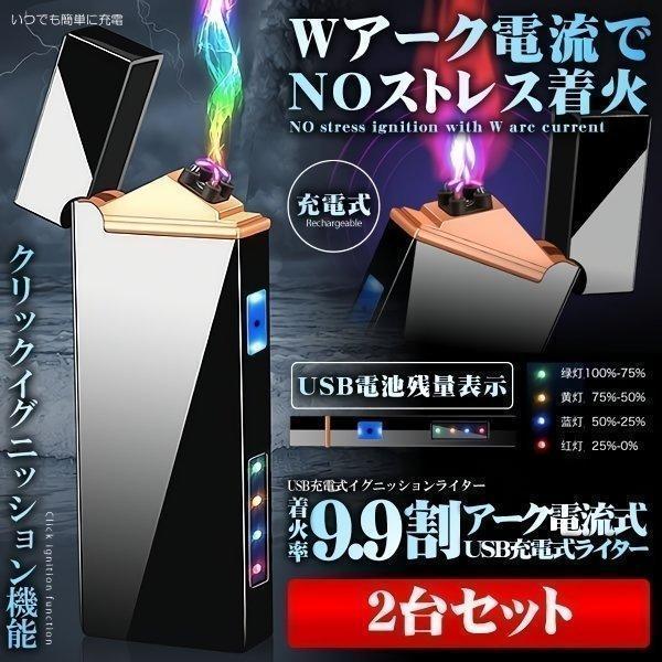 電子ライター USBライター プラズマライター アークライター 無煙ライター ライター USB充電式ライター Wアーク 電流 電子 小型 2個セット ARKDDEA