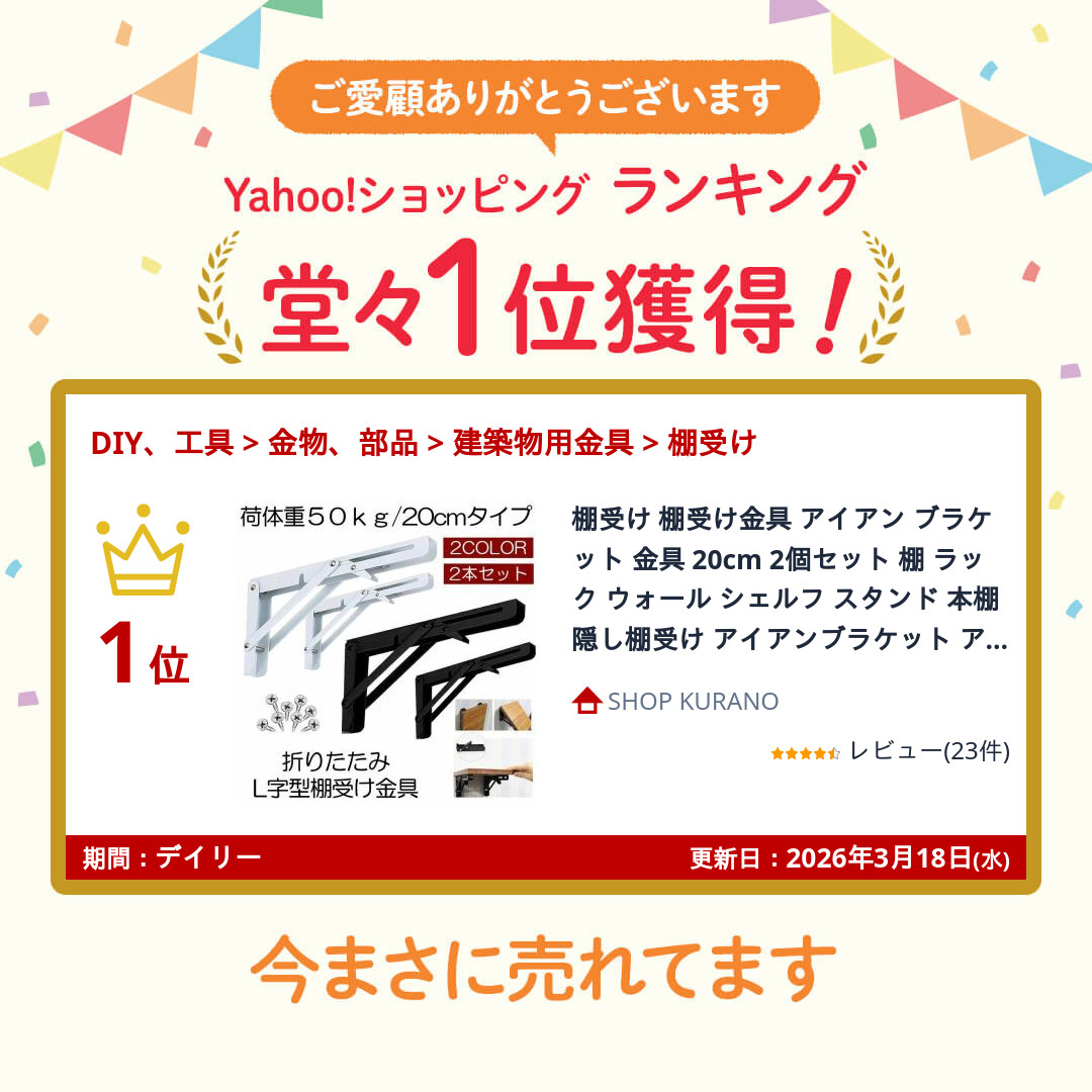丈夫な棚受けブラケットです。