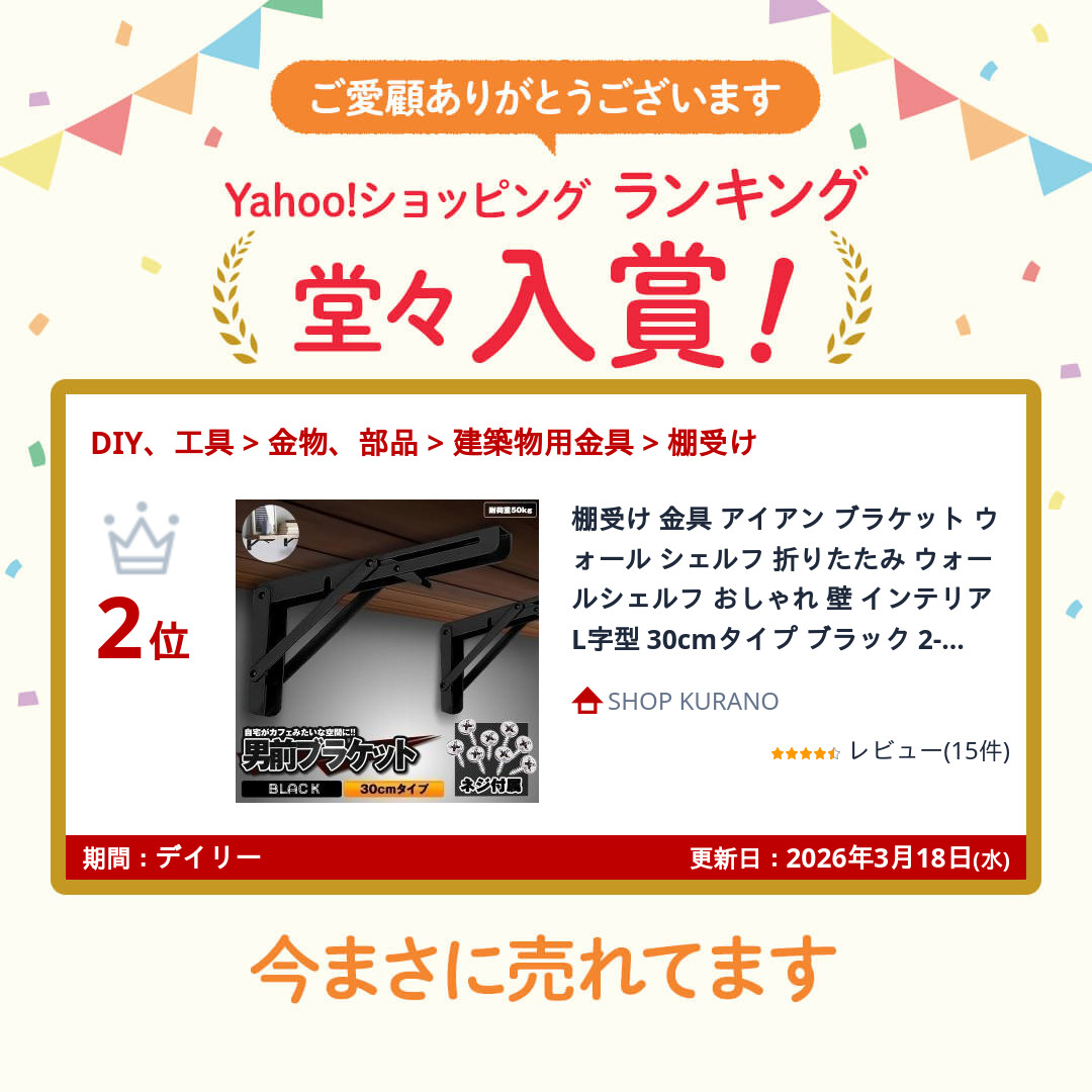 丈夫な棚受けブラケットです。