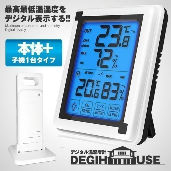 温湿度計 子機1個 湿度計 外気温 デジタル 外温度 室温計 温度湿度計 湿度温度計 ワイヤレス 室内 室外 屋外 気温 外気 業務用 キャンプ 冷蔵庫 冷凍庫 説明書付