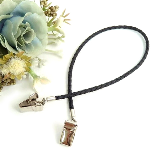 四つ編みエコレザー合皮コードを使用した高級感たっぷりのハットクリップです。