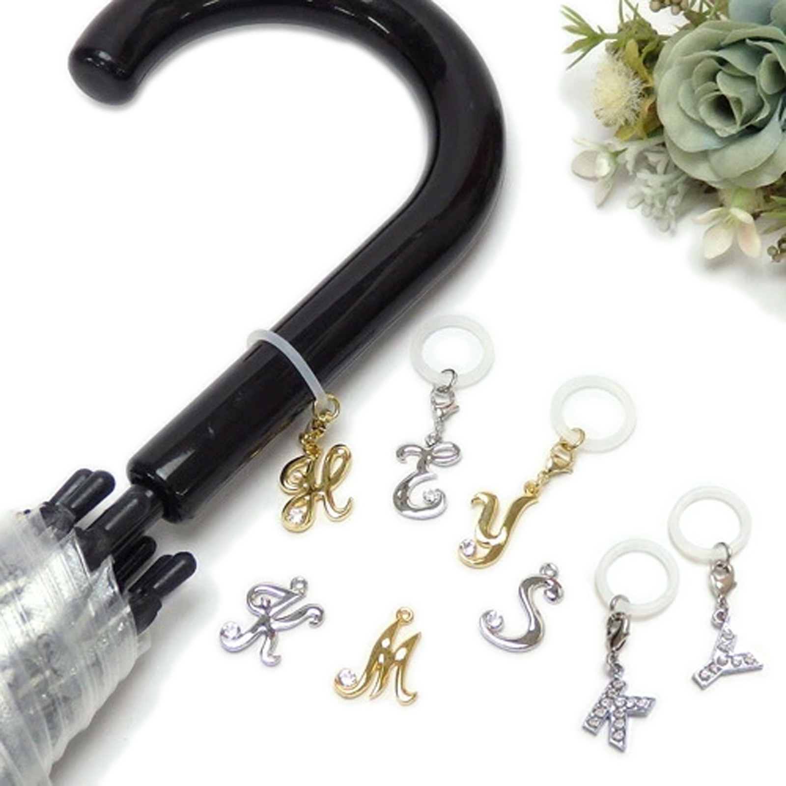 アルファベットで自分の傘の目印になります。
