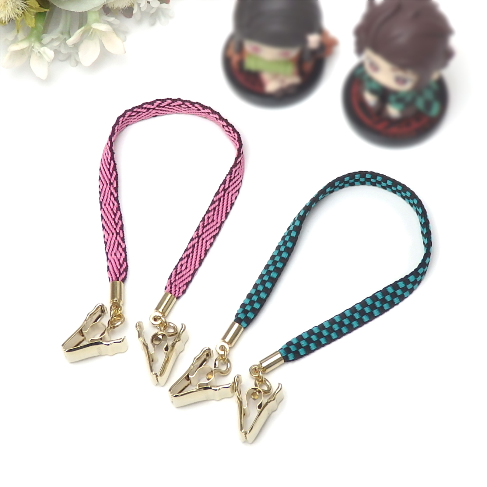 話題の漫画「鬼滅の刃」の鬼殺の剣士のイメージカラーで織られた鬼殺し紐(加賀紐)で作りました。