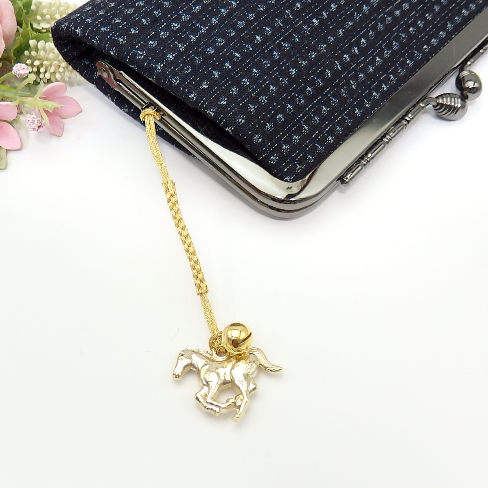 素材:真ちゅうパーツ、紐、鈴、帯飾りプレート(樹脂)