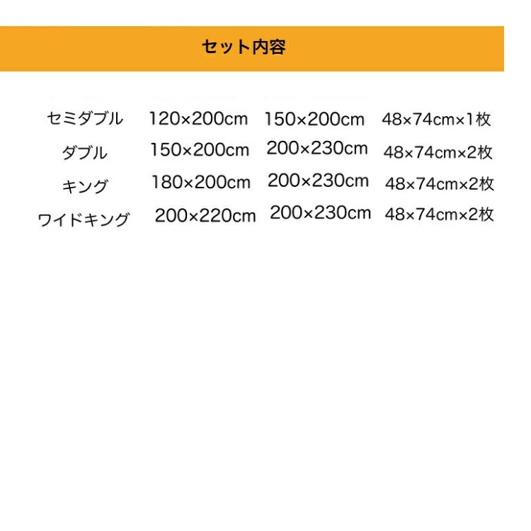 2.0M(4点セット):200x220cmシーツ枚+200x230cm夏用掛け布団1枚+48*74cm枕カバー2枚