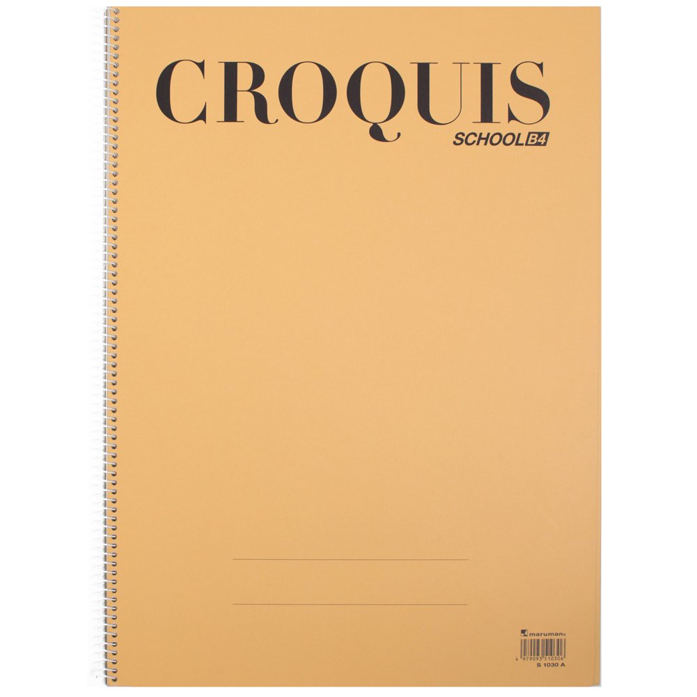 表紙がしなやかで開きやすい「クロッキーブック」です。学習資料と下敷き付きのスクール用クロッキーです。【特長】簀目のタテ線が描く時の目印になります。紙がソフトなので筆圧により線の強弱、強さ、かすれをよく表現できます。商品名:マルマン スケッチブック スクール用 クロッキー B4 S1030A