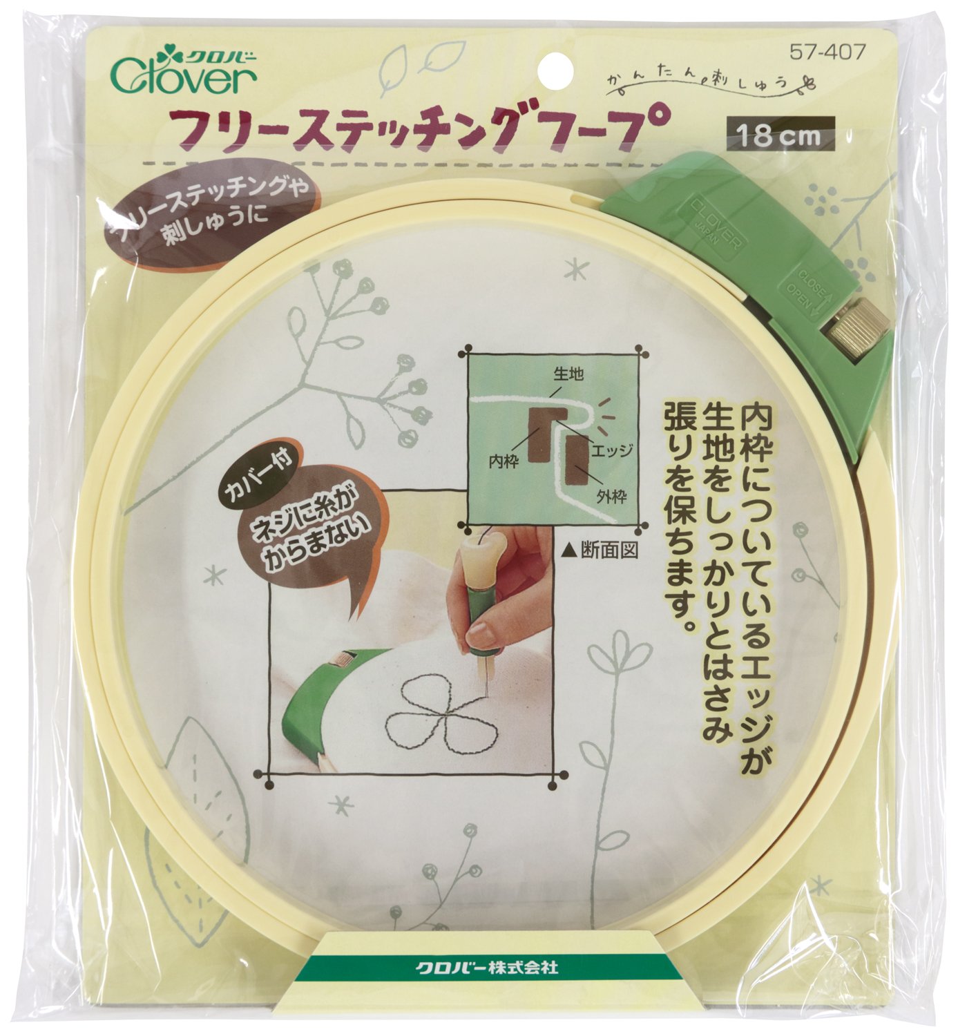 商品紹介●フリーステッチングや刺しゅうに。●内枠についているエッジが生地をしっかりはさみ、張りを保ちます。●ネジに糸がからまないカバー付です。安全警告なし