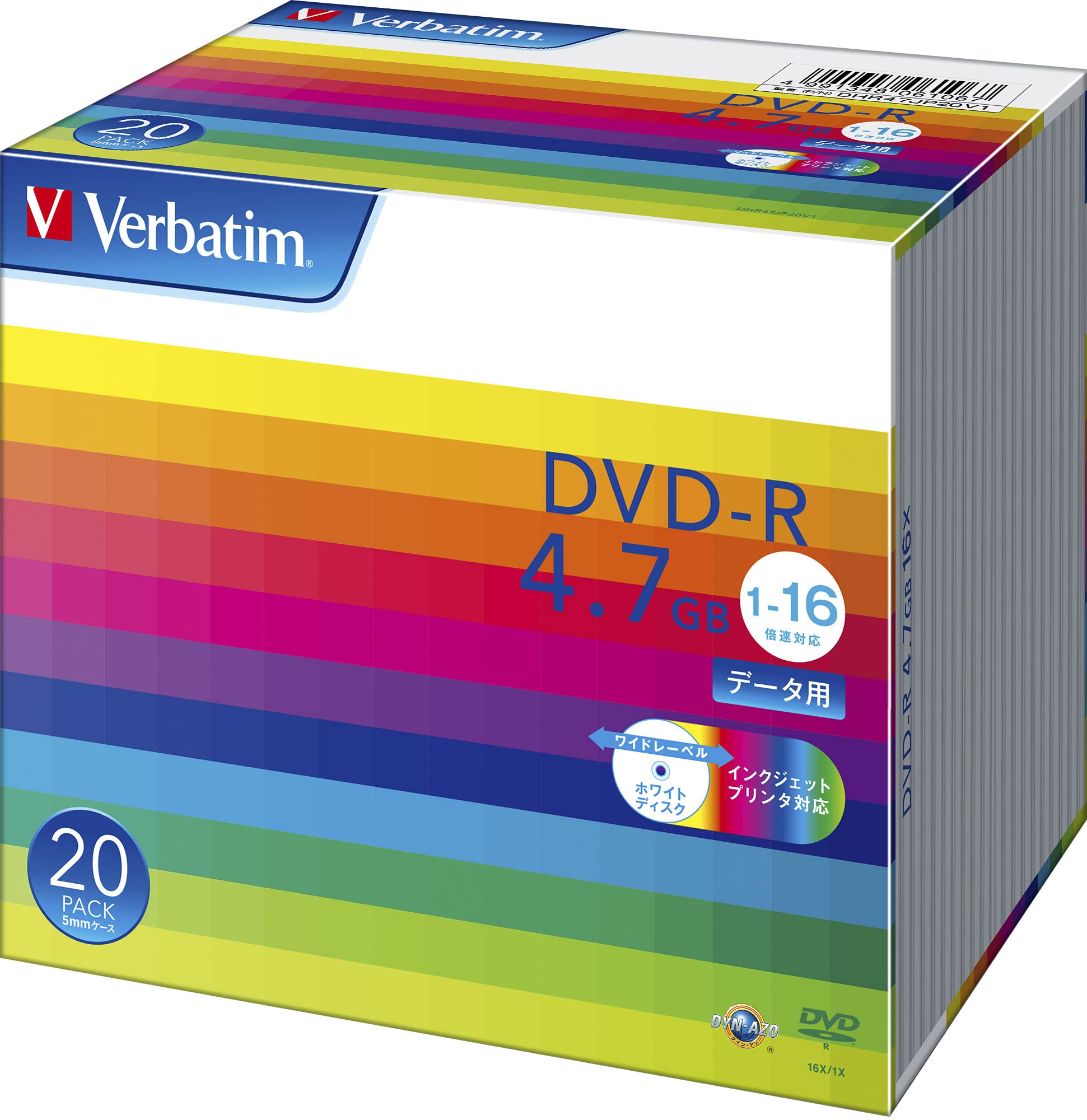 Verbatim バーベイタム 1回記録用 DVD-R 4.7GB 20枚 ホワイトプリンタブル 1-16倍速 片面1層 DHR47JP20V1