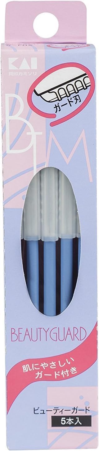 貝印 ステンレス鋼 ビューティーガード 5本入り BTMG?5F #ガード付ステンレス刃のロングセラーL型カミソリ × 2個 ブルー