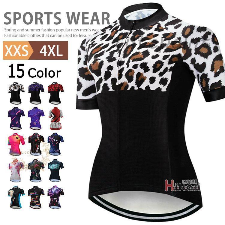 サイクルジャージ サイクルウェア レディース ロードバイク ウェア 半袖 総柄 ヒョウ柄 自転車 サイクリングウェア ジャージ 吸汗速乾 通気性 スポーツウェア ジップアップシャツ シャツ おしゃれ カジュアル アウトドア プレゼント 贈り物 春服 秋服 夏用