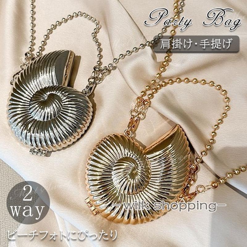 パーティーバッグ 2way ミニバック 巻貝 螺 斜め掛け チェーン ハンドバッグ ショルダーバッグ 結婚式 二次会 披露宴 発表会 同窓会 お呼ばれ フォーマル