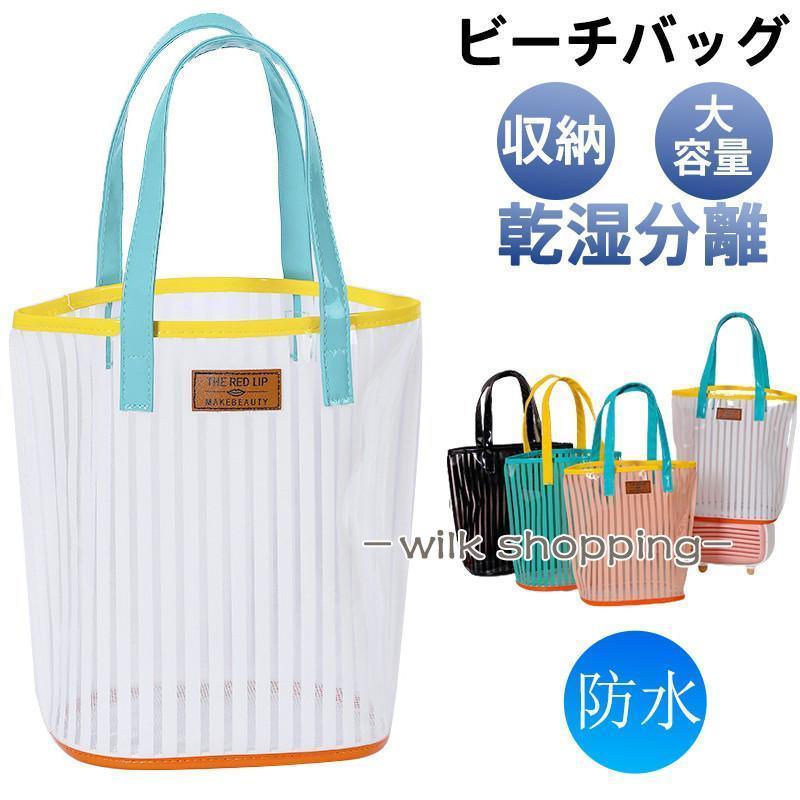 ビーチバッグ トートバッグ クリアバッグ ストライプ レディース プールバッグ シンプル 防水 カジュアル 海水浴 温泉 水泳