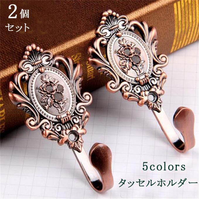 カーテン ふさかけ 2個セット タッセルホルダー タック 合金製 カーテンアクセサリー 5色 小物