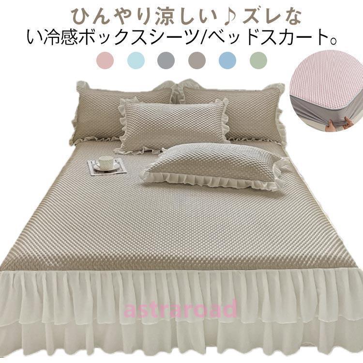 接触冷感 ボックスシーツ 敷きパッド一体型 セミダブル 洗える ひんやり ベッドスカート 夏用 クールシーツ マットレスカバー パッド一体型ボックスシ
