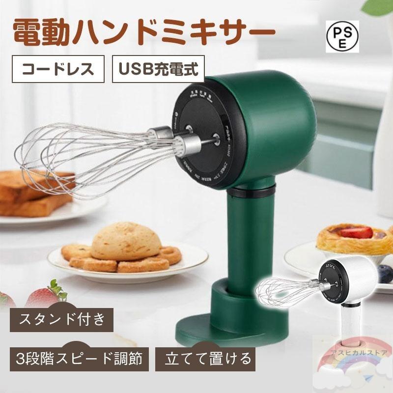 ハンドミキサー 3段スピード USB充電式 スタンド付き コードレス コンパクト 泡立て器 電動 調理器具 超軽量 持ち運び クリーム ホイップ