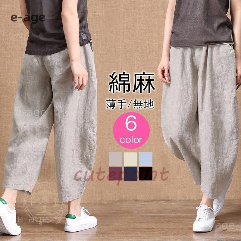 サルエルパンツ レディース チノパン パンツ 麻綿パンツ カジュアルパンツ ロング丈 無地 春夏 ウエストゴム ボトムス 美脚 おしゃれ 夏物 夏服